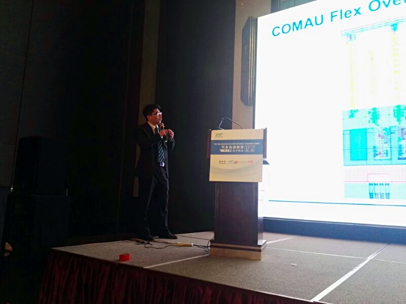 RichardWeston先生發(fā)表演講(圖) 柯馬已在中國已經(jīng)裝配了超過100條汽車白車身線。RichardWeston先生指出ComauFlex是重構(gòu)制造工廠的理念,柯馬新的運(yùn)營哲學(xué)以模塊化的方式優(yōu)化了制造工作區(qū)域的布局,可提高生產(chǎn)效率,降低運(yùn)營成本和簡化新車型的引入。 柯馬中國焊裝機(jī)械工程部經(jīng)理羅先兵先生也發(fā)表了關(guān)于柯馬創(chuàng)新技術(shù)的演講,羅先生首先向大家詳細(xì)闡述了Comauflex的概念和典型應(yīng)用,隨后向大家介紹了柯馬獨(dú)有的3DScanning(工廠三維掃描),LHYTE復(fù)合激光源,以及虛擬調(diào)試等先進(jìn)技術(shù)。引起了與會(huì)嘉賓的強(qiáng)烈興趣。